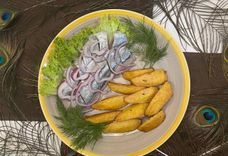 80/250 г • Селедка, картофель во фритюре, лук маринованный